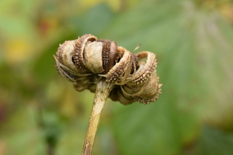Dans un premier temps, les petites graines annulaires du centre mûrissent et tombent sur le sol. Ensuite, le réceptacle change de forme et les grandes graines de la périphérie s'écartent : elles sont ainsi plus susceptibles d'être "embarquées" par un animal qui passerait par-là, ou, selon le modèle, emportées par un coup de vent. Les longues graines épineuses restent aussi plus longtemps attachées au réceptacle que les autres. (2)